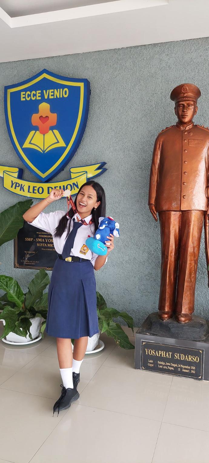Lihatlah senyum bangga dari Rafella Junika Indah Kesuma (Kelas IX.1), perwakilan terbaik dari SMP Yos Sudarso Metro yang baru saja menorehkan prestasi gemilang!