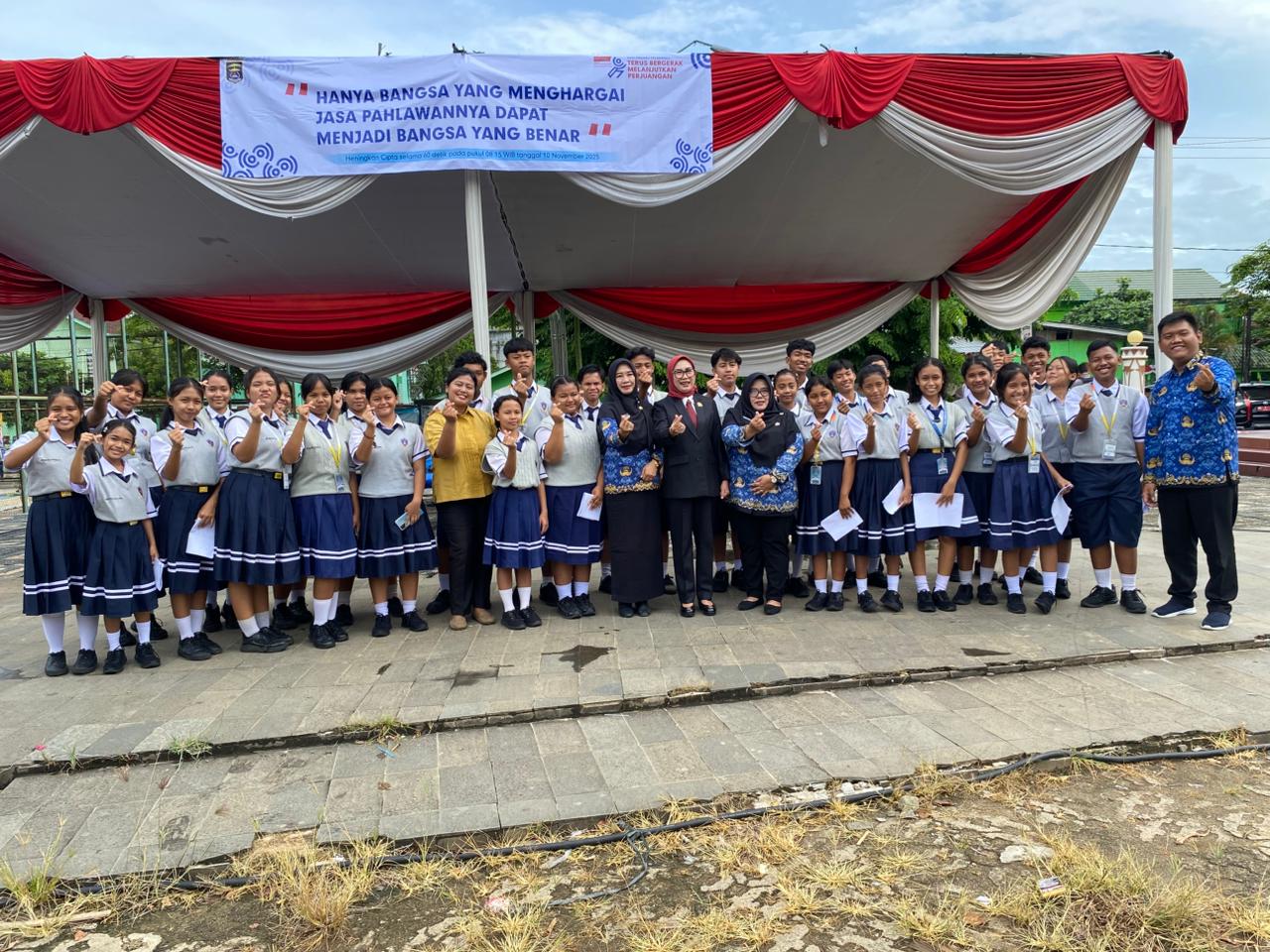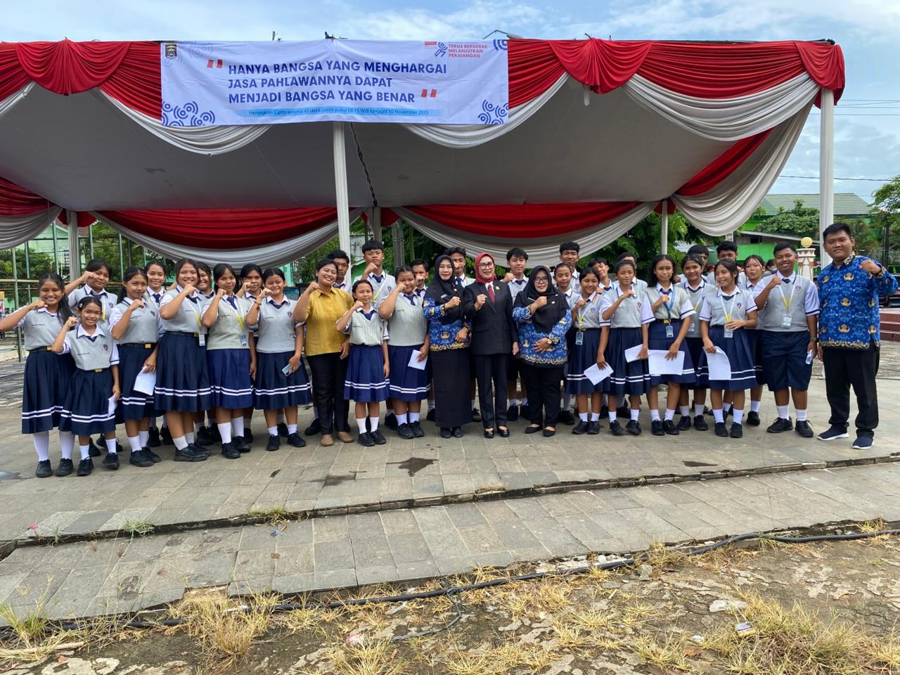 METRO, 10 November 2025 - Suasana khidmat menyelimuti Lapangan Samber, Kota Metro, saat Pemerintah Kota Metro menyelenggarakan Upacara Peringatan Hari Pahlawan pada Senin, 10 November 2025. Dalam peringatan penting ini, Paduan Suara dari Sekolah Menengah Pertama (SMP) Yos Sudarso Metro mendapat kehormatan besar untuk menjadi pengisi suara aubade dalam rangkaian upacara tersebut.