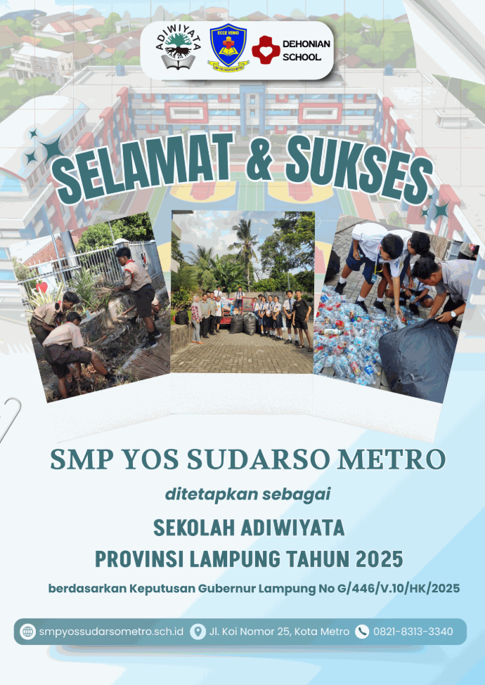 Metro, 21 Oktober 2025 – Kabar membanggakan datang dari dunia pendidikan di Kota Metro. SMP Yos Sudarso Metro secara resmi telah ditetapkan sebagai Sekolah Adiwiyata Provinsi Lampung Tahun 2025. Penghargaan bergengsi ini merupakan pengakuan atas komitmen sekolah dalam mewujudkan lingkungan yang sehat, bersih, indah, serta berbudaya lingkungan.
